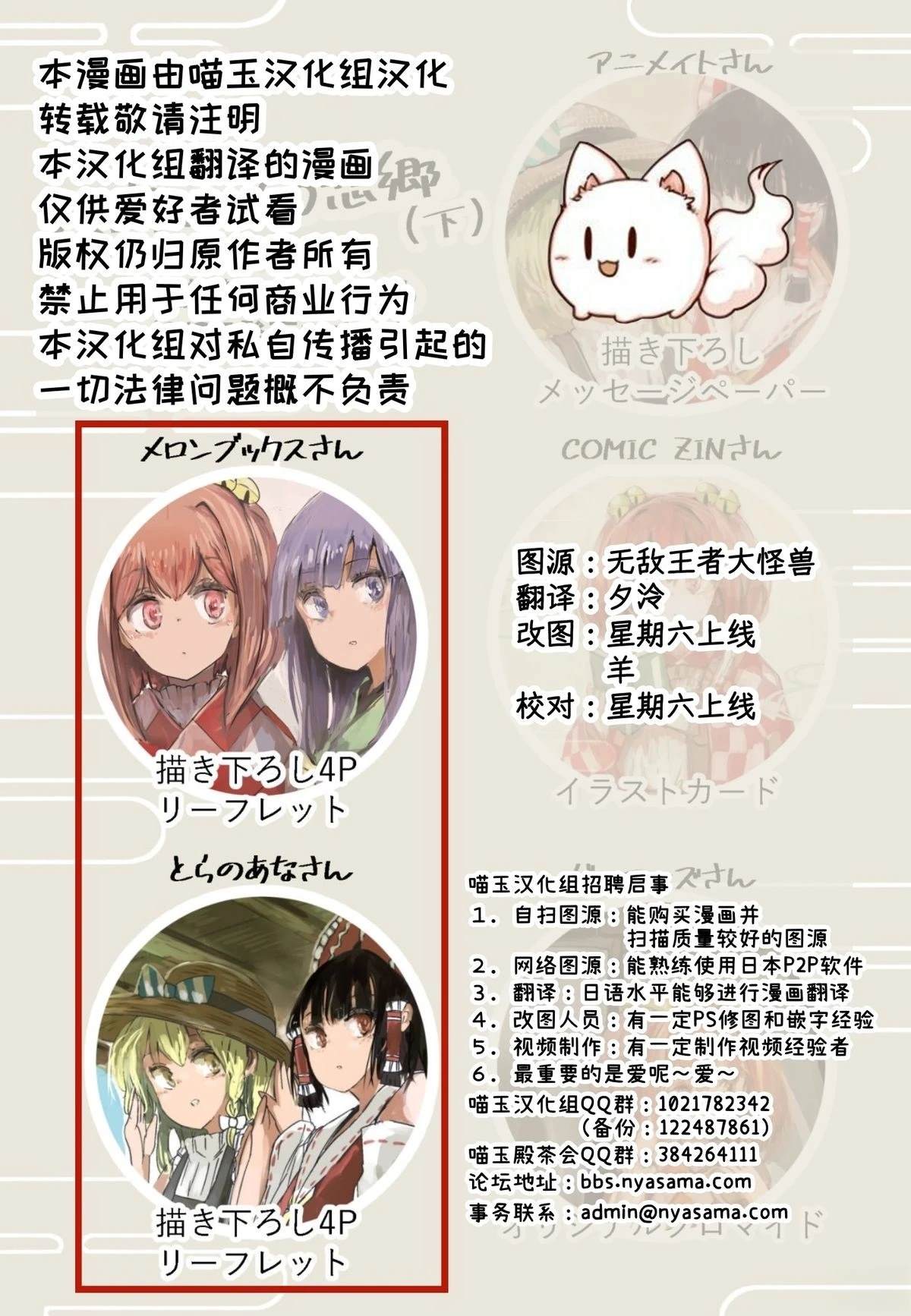 描绘了以稗田阿求、本居小铃等生活在幻想乡的人类们所的友情、矛盾、成长,高故事格调的漫画