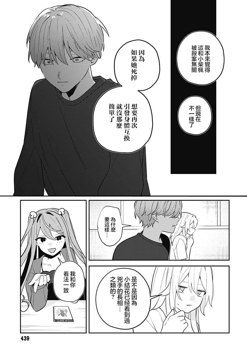 某一天,小柴枫感到自己的身边有些违和感。不仅家人和同学在说一些自己急不得的事情,还发现自己在和一名名为“堤结花”的不认识的女孩“每天”交换身体。枫本打算和结花解决这起突然发生在自己身上的奇异现象、但却突然发生了一起彻底改变二人日常的事件——。
